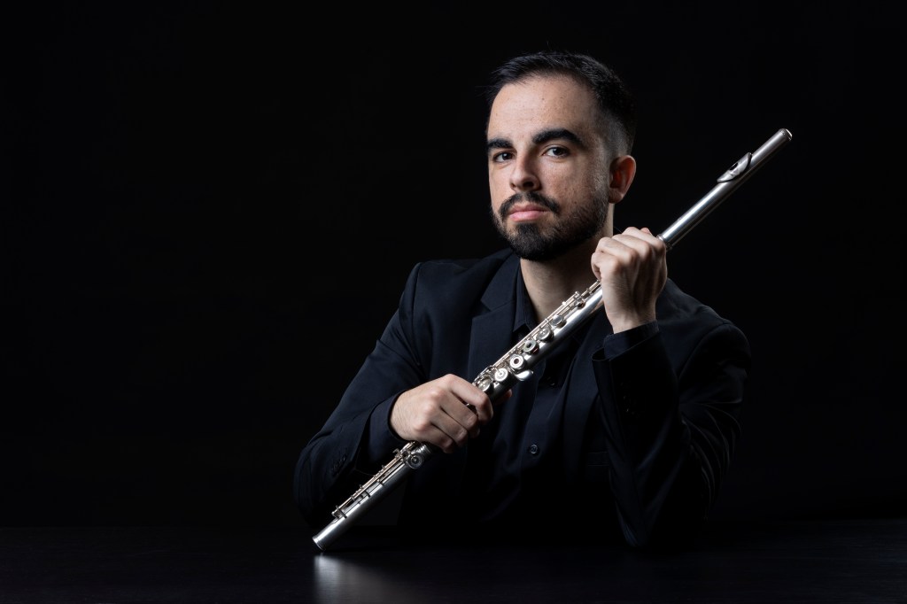 Born in Spain, Angel’s musical journey began with a Bachelor’s degree in Flute Performance from the Royal Irish Academy of Music, validated by Trinity College Dublin, in 2017. Under the guidance of esteemed professors William Dowdall and Patricia Morris, he honed his craft before pursuing advanced studies in the United Kingdom. He earned a Master’s in Flute Performance in 2020 and a Postgraduate Diploma in 2021 from the Royal Northern College of Music (RNCM) in Manchester, studying with renowned flutists such as Kevin Gowland, Susan Milan, Laura Jellicoe, and Cormac Henry. His academic excellence was recognized with scholarships, including the Charles Greenhough Award, Rowland Hardy Award, Helen R. Mackaness Charitable Trust, and Waverley Fund. In 2024, Angel completed a Master’s in Musical Research at the Universidad Internacional de Valencia, with a thesis exploring the use of vibrato in Mozart’s Flute Concerto.